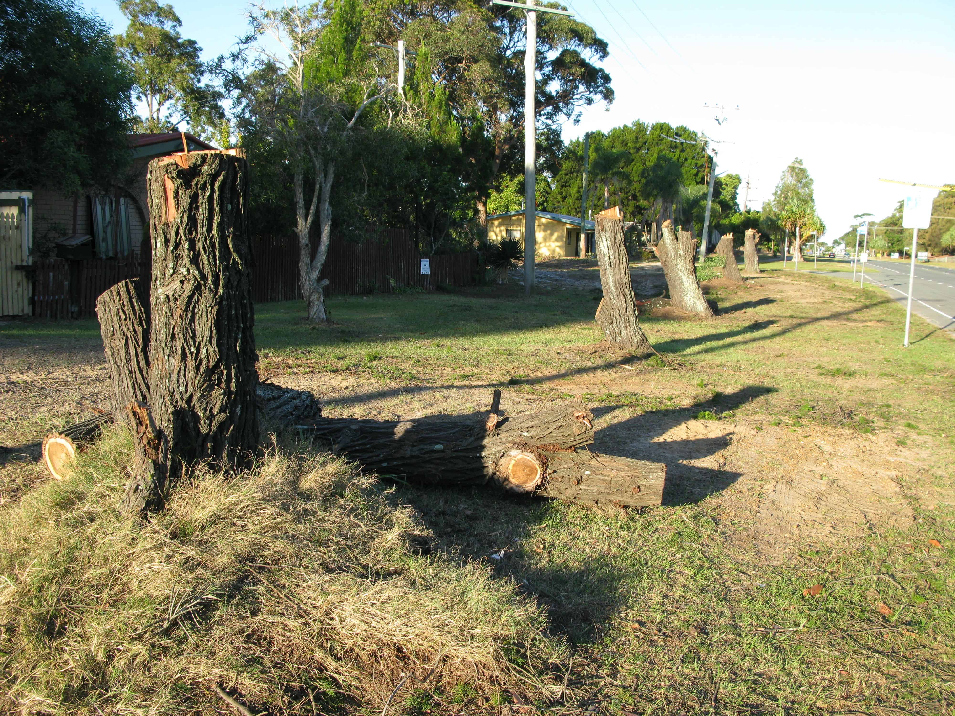 Same area today where Bribie Pines were removed. None of the trees that were removed have been replaced